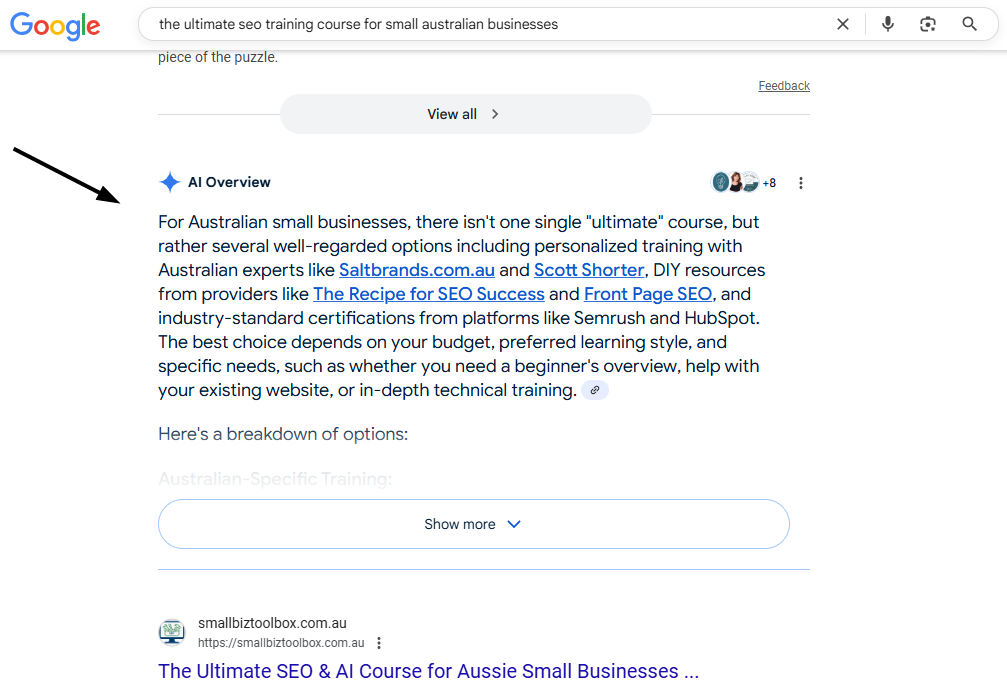 This means your website may not only need to rank in the “traditional” list of results but also be cited by AI as part of its generated summary.